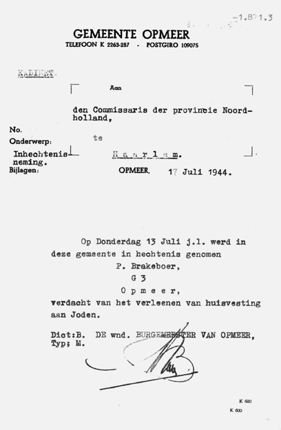Een van de dochters Brakeboer is nog naar Amsterdam gegaan om wat eten en kleding te brengen. Op haar verzoek of ze haar vader even mocht spreken werd haar spottend medegedeeld door een jonge SS’er: ‘Je mag je vader zo meenemen wanneer jij mij twee adressen geeft waar Joden zitten ondergedoken.’