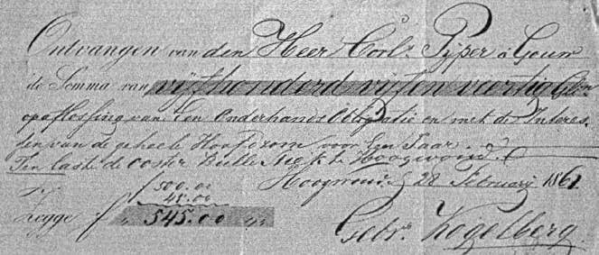 Kwitantie aflossing obligatie van de bullestiek, 1861