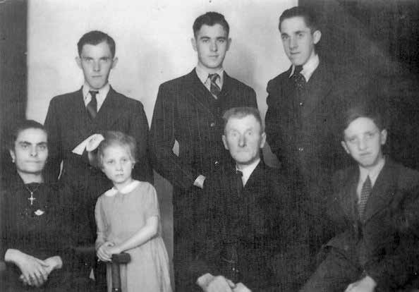 1945. Boven vlnr. Jan, Joop en Dick. Onder: moeder, Leentje, vader, Johan