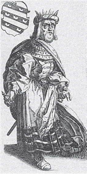 Afbeelding van koning Redbad, uit P. Winsemius, Chronique ofte Historische geschiedenisse van Frieslandt.