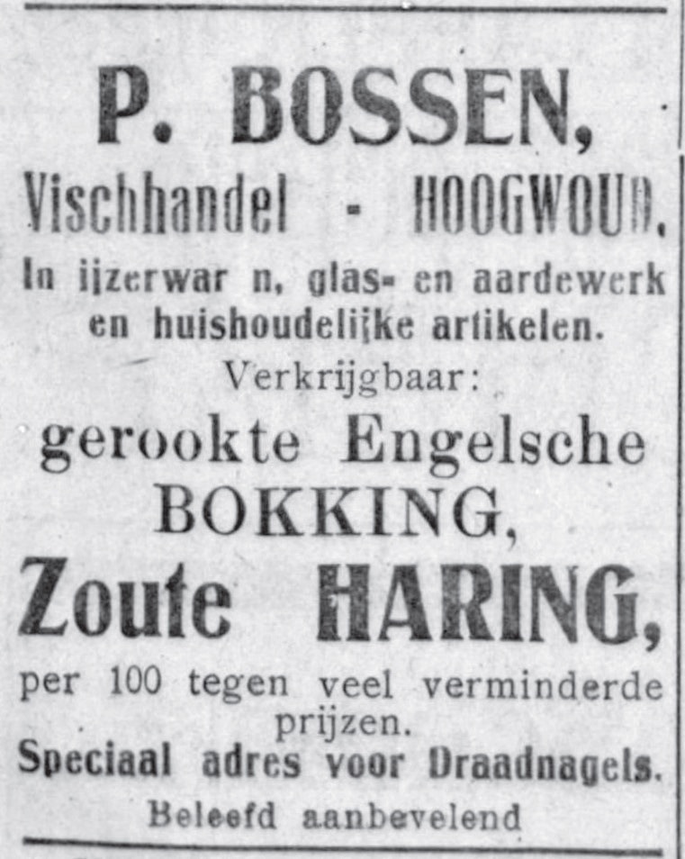 Auto’s, motoren, fietsen, stro, vlees, vis, sigaren, port, huishoudelijke artikelen, allerlei tweedehands spullen, pianolessen. Een kruidenier doet zijn zaak over, een visboer verkoopt draadnagels. Er was van alles in de aanbieding in de gemeente zo kort na de Eerste Wereldoorlog. De middenstanders adverteerden in streekbladen. Onderstaande advertenties zijn een selectie uit De Nieuwe Courant (DNC, Hoorn 1894 – 1939) en De Schager Courant (SC, bestaat nog).