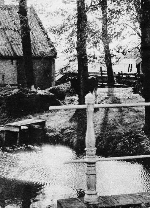 Armenhuis Aartswoud in 1939. Links de stal, stier op het erf.